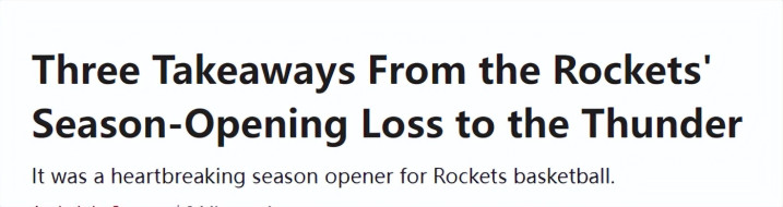 北京时间10月22日,NBA常规赛揭幕战,火箭双加时124-125惜败雷霆。赛后,美媒《体育画报》对火箭的揭幕战进行点评——